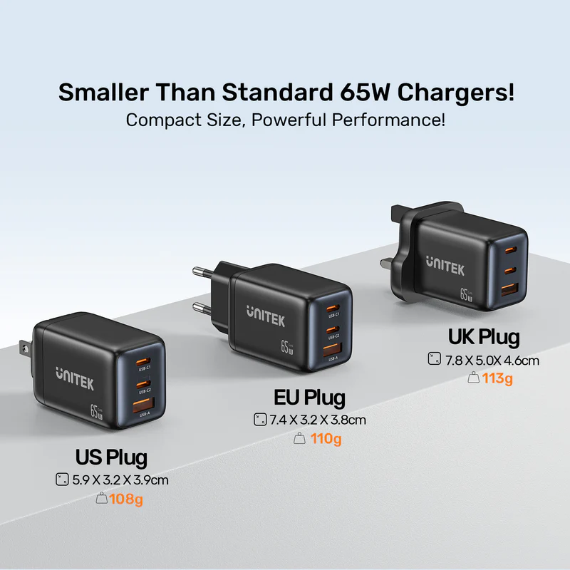 | Mã sản phẩm | UNITEK Zeno 65W 3-Port GaN Wall Charger |